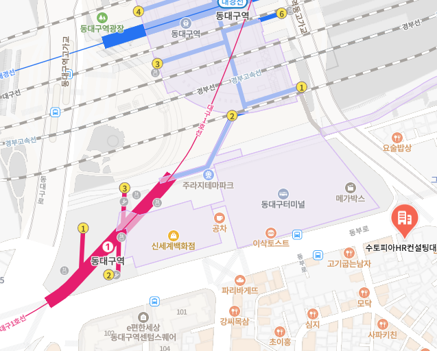 **µ¿´ë±¸¿ª ÁöÇÏö¿ª, KTX¿ª, º¹ÇÕȯ½Â¼¾ÅÍ¿¡¼ µµº¸ 3~5ºÐ Á¤µµ ¼Ò¿ä
